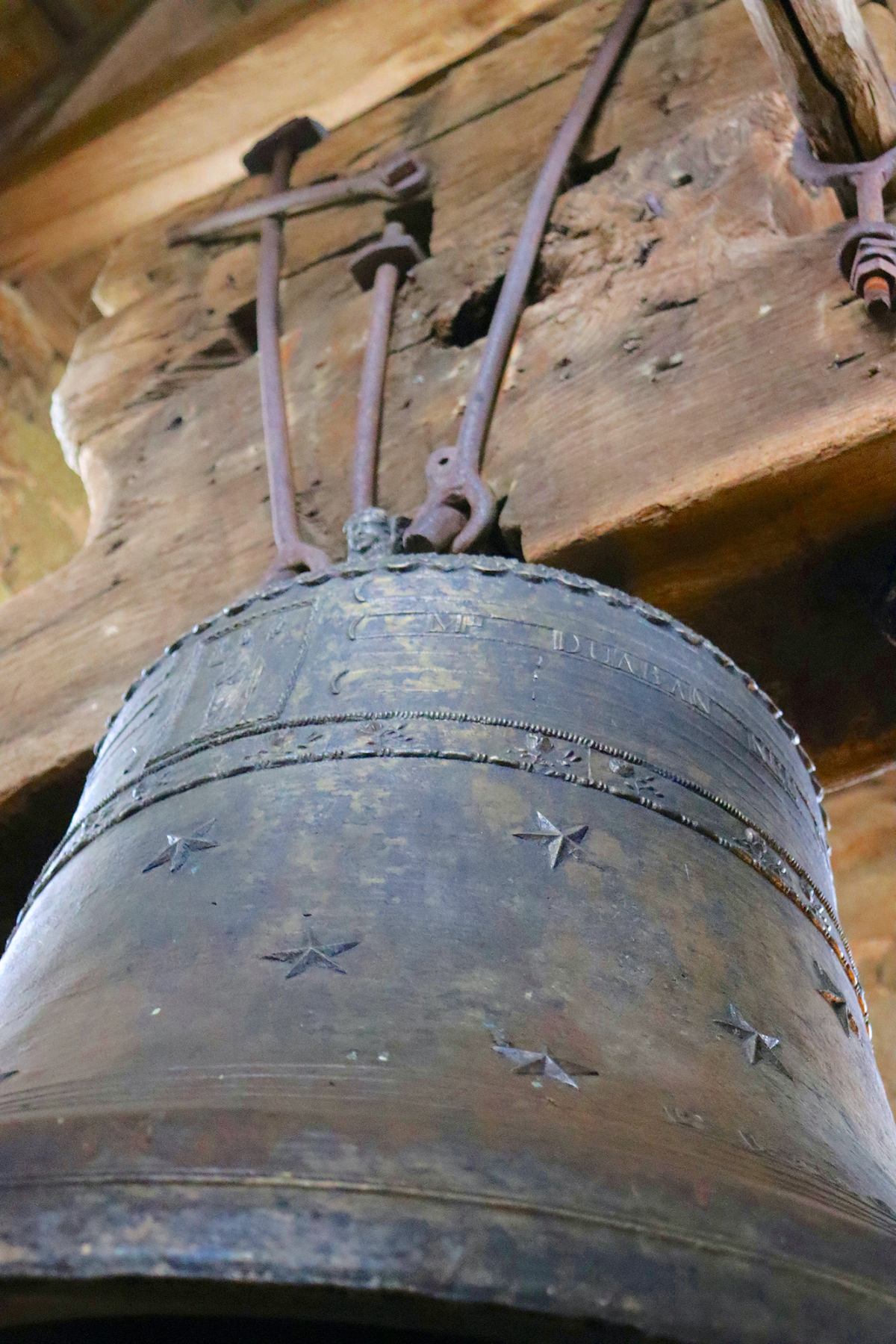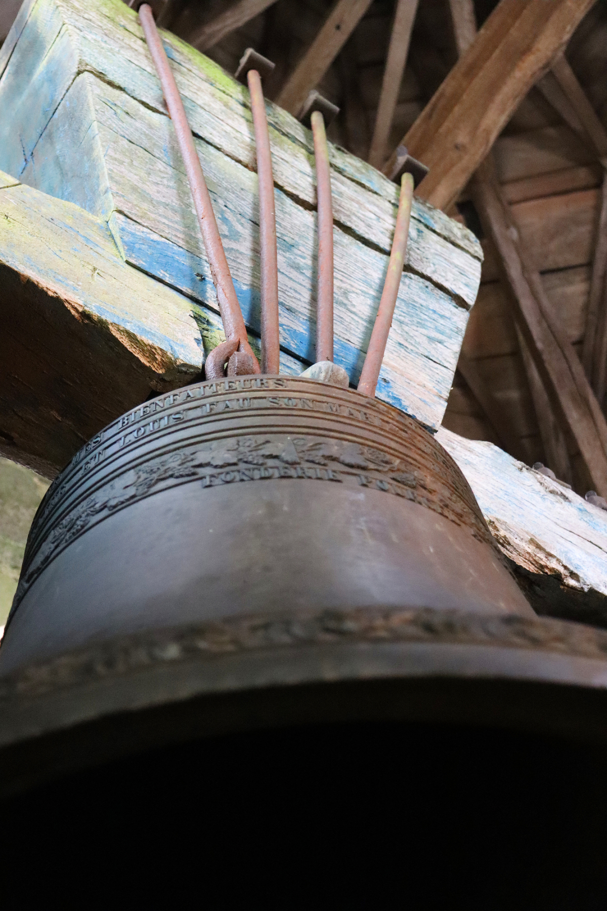 Bernard admire longuement Saint-Pierre, il en parle comme d’un vieil ami. Ses doigts montrent une zone argentée. Marque d’une restauration. Le métal sous les coups du battant s’était trop creusé et la cloche menaçait de se fissurer. «La rénovation a eu lieu il y a quatre ans, depuis elle n’a plus le même son. Avant, elle résonnait plus sourd et maintenant c’est comme si le son s’en allait». Attentif aux moindres bruits, il a remarqué que le bois du joug de Saint-Pierre craquait. Signe d’une réparation nécessaire.