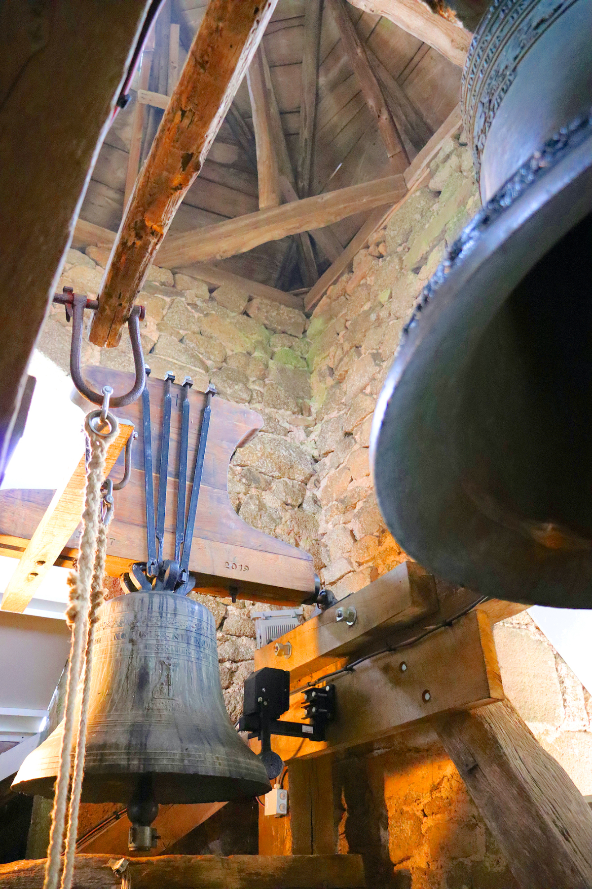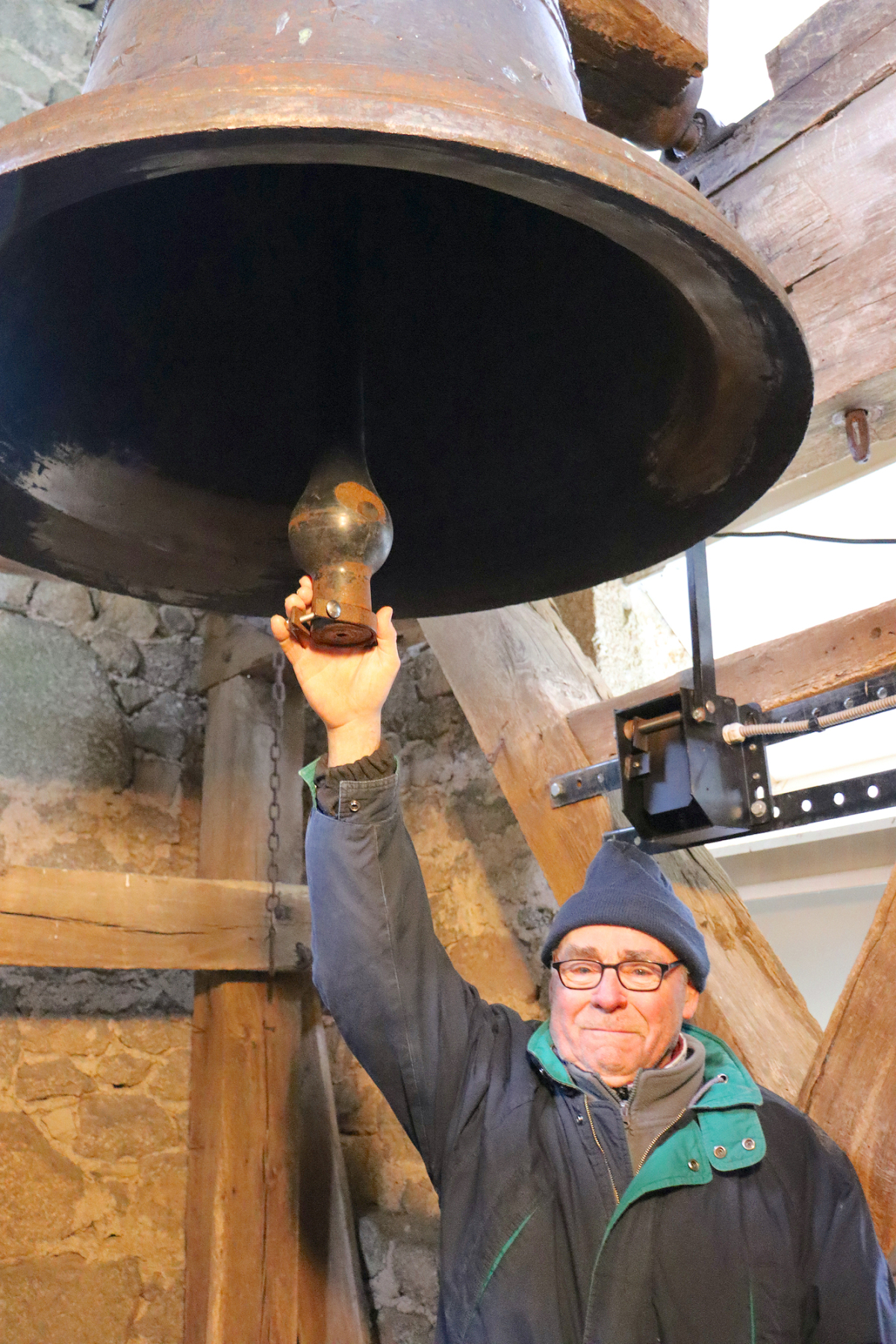 En pleine discussion, un violent bruit sourd retentit. Le cœur et le corps sursautent. Il est 9h30. Bernard, lui, reste impassible. Sûrement l’habitude. «Ça sonne les demis», précise-t-il. Ici pas de Quasimodo, mais un marteau qui frappe mécaniquement l’airain. L’électrification a atteint le clocher, remplaçant le rythme irrégulier du carillonneur. «Ça ne tape pas pareil, avec l’électrique on y perd, c’est difficile à expliquer, mais chaque personne à une façon unique de sonner», souligne le Campuacois.
