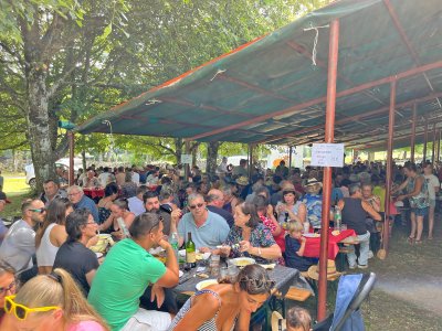 Pendant plusieurs jours, la vingtaine de bénévoles, rejoints le jour J par une dizaine d'autres, n'ont pas chômé pour recevoir les 400 convives : c'était d'ailleurs la jauge maximum, et on affichait complet. Parmi les convives, de nombreux habitants de La Bastide, bien entendu, et des villages voisins d'Auriech, Les Horts, Ruols, Aunac, Saupiac, Salgues, Saint-Côme, Condom, dont Geneviève Gasq-Barrès, maire, quelques Espalionnais et des touristes fascinés par la cuisson, au milieu d'un immense brasier, des gigots d'agneau, et la préparation, selon un rituel immuable, de l'aligot. Quelques Tambourniers (habitants de Lassouts), de l'association des Vieilles mécaniques, étaient venus avec leurs véhicules anciens.