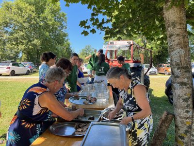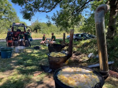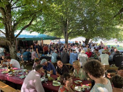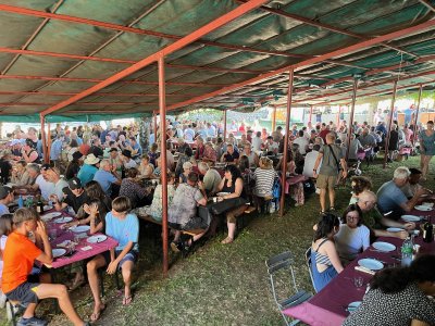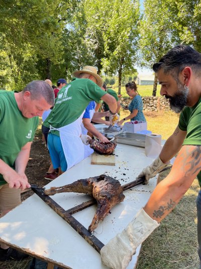 Autour de Didier Lacassagne, ils sont plus d'une trentaine à s'activer pour accueillir, comme chaque année début août, 4 à 500 convives pour déguster aligot et gigots d'agneaux. En toute simplicité, comme pour un repas de famille... nombreuse !