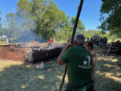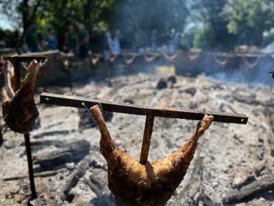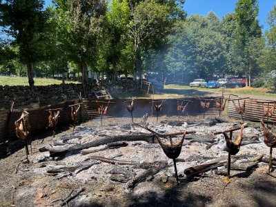 Principales attractions de la journée, l'aligot préparé à partir de pommes de terre, dont nous vous disions l'année dernière qu'il était “le plus photographié du monde”, mais également la trentaine de culottes d'agneau cuites à l'argentine, façon “asado”, sur des broches en forme de croix fichées autour d'un brasier à même le sol.