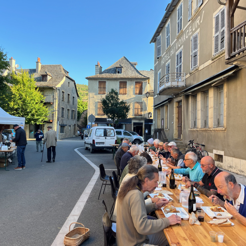 L'Élan, association des commerçants et artisans de Saint-Côme, qui avait bien fait les choses, a eu en prime l'excellente idée de proposer des tripous à déguster sur place ou à emporter. Afin de tâter le terrain, les organisateurs avaient fixé la jauge à 150 parts : 300 tripous confectionnés par la boucherie Cadoul et cuits dans le four du Greffe après assaisonnement spécial Lacan père et fils. Plus de la moitié ont été consommés sur place, c'était une première, en plein air en face du greffe. Une réussite !
