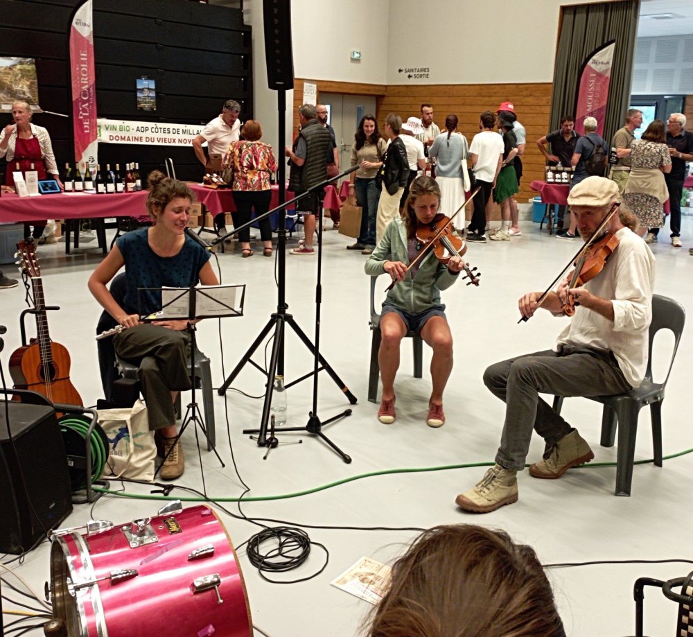 Cette année, le salon des vins de l’Aveyron s’est tenu dans la salle multiculturelle : les Oiseaux de Trottoir, désormais bien implantés au Fel, ont égayé la journée des nombreuses musiques de leur répertoire.