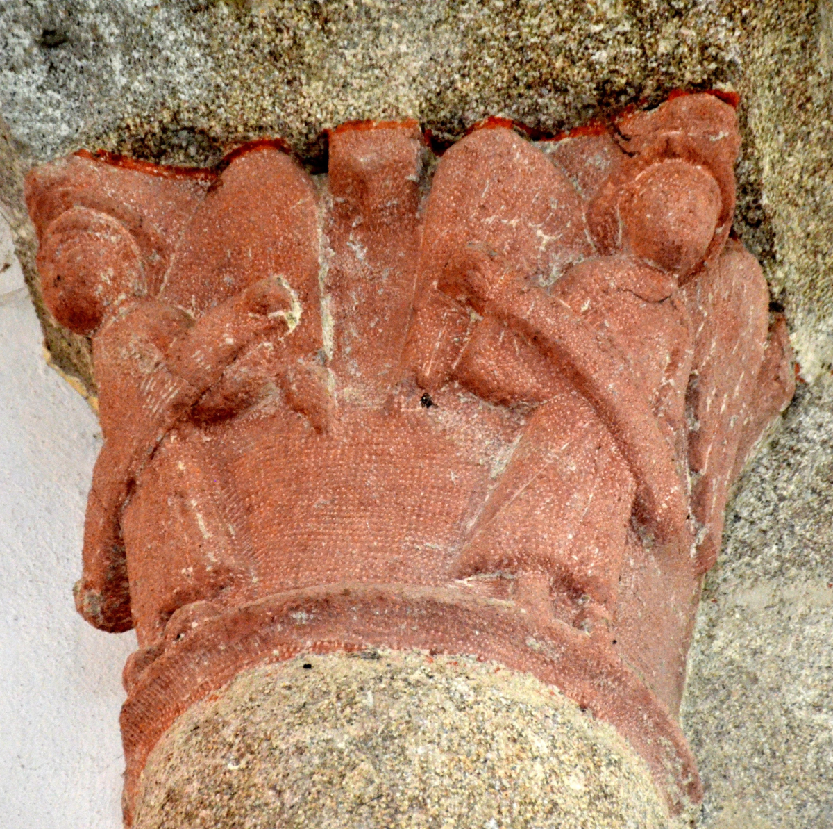 Mais l’objet qui retient le plus notre attention est, sans conteste, une statuette en pierre (sans doute du XVe siècle) représentant une Vierge à l’enfant. Cette petite statue, placée dans une niche du collatéral droit, a ceci de particulier qu’un ange a été sculpté au pied de la Madone. Or, l’ange en question tient entre ses mains un écu sur lequel figure une croix ancrée. Précisons ici que la croix ancrée possède des branches dont les extrémités se terminent par des doubles pointes recourbées et pointues (faisant bien entendu penser aux ancres des bateaux). Et puisque nous parlions à l’instant “d’ancre”, nous noterons que cet objet, servant à stabiliser un navire à un endroit voulu, a parfois été représenté sur les tombes des premiers chrétiens, car l’ancre, symbole de la fermeté (les vagues ne pouvant l’ébranler), de la constance ou encore de l’espérance, rappelait la solidité de la foi chrétienne, comme elle était également l’emblème du salut. La croix ancrée reprend ce symbolisme, puisqu’elle évoque la stabilité de la foi en dépit des épreuves. Enfin, nous remarquerons que les marins emportaient souvent avec eux des croix ancrées lors de leurs voyages maritimes, pensant ainsi se protéger des dangers de la mer.