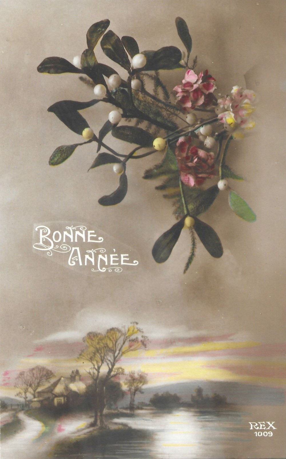 Ainsi que nous venons de le voir, le gui et le houx sont devenus indissociables du Nouvel An, au point qu’il n’est guère imaginable d’envisager de décorer les maisons pour les fêtes de fin d’année sans leur présence. Outre les demeures, ce sont les cartes de Noël et de Nouvel An qui s’en trouvent également ornées, et ce, depuis la création des cartes de vœux.